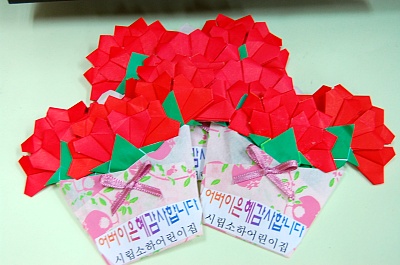 아이들이 손수 만든 카네이션을 후원해 주셨습니다.