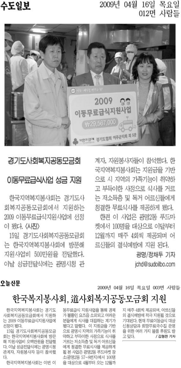 경기도사회복지공동모금회 이동무료급식지원사업 선정 페이지 정보 작성자 최고관리자 댓글 0건 조회 5,645회 작성일 09-04-16 00:00 본문 경기도사회복지공동모금회 이동무료급식지원사업 선정 목록 이전글2009 행복+사랑÷ 바자회 성료 09.04.27 다음글'마음을 나누는 마음누리' 학습자원봉사단 모집 08.03.17