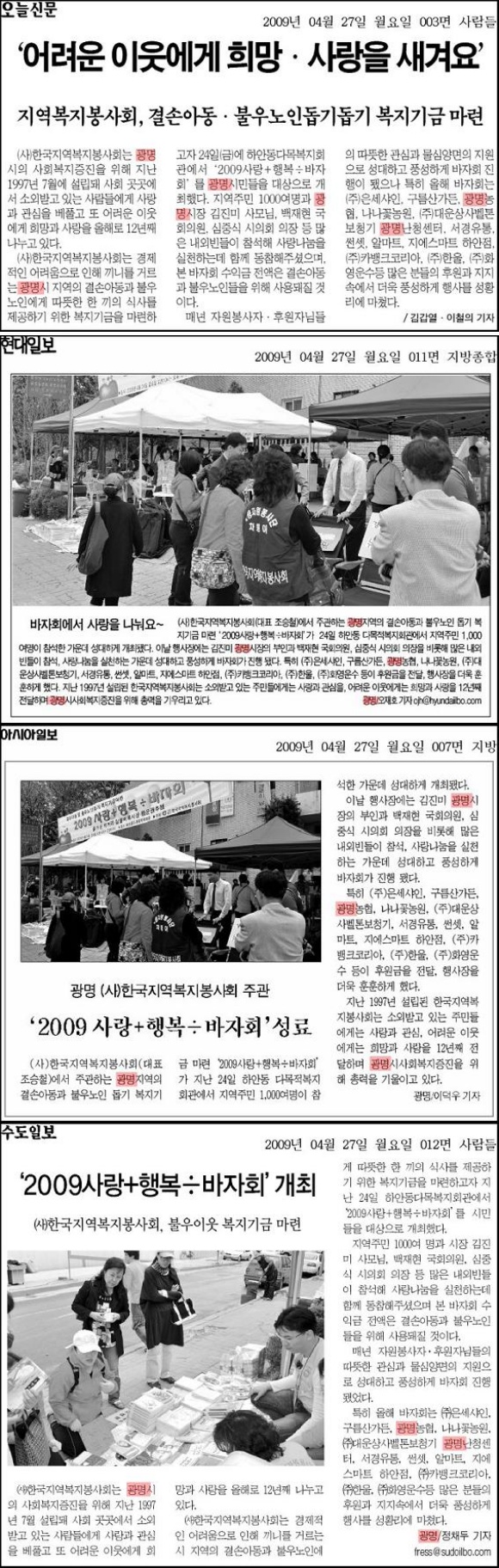 2009 행복+사랑÷ 바자회 성료 페이지 정보 작성자 최고관리자 댓글 0건 조회 5,384회 작성일 09-04-27 00:00 본문 2009 행복+사랑÷ 바자회 성료 목록 이전글2009어버이날 기념 "만수무강 효잔치" 성료 09.05.11 다음글경기도사회복지공동모금회 이동무료급식지원사업 선정 09.04.16