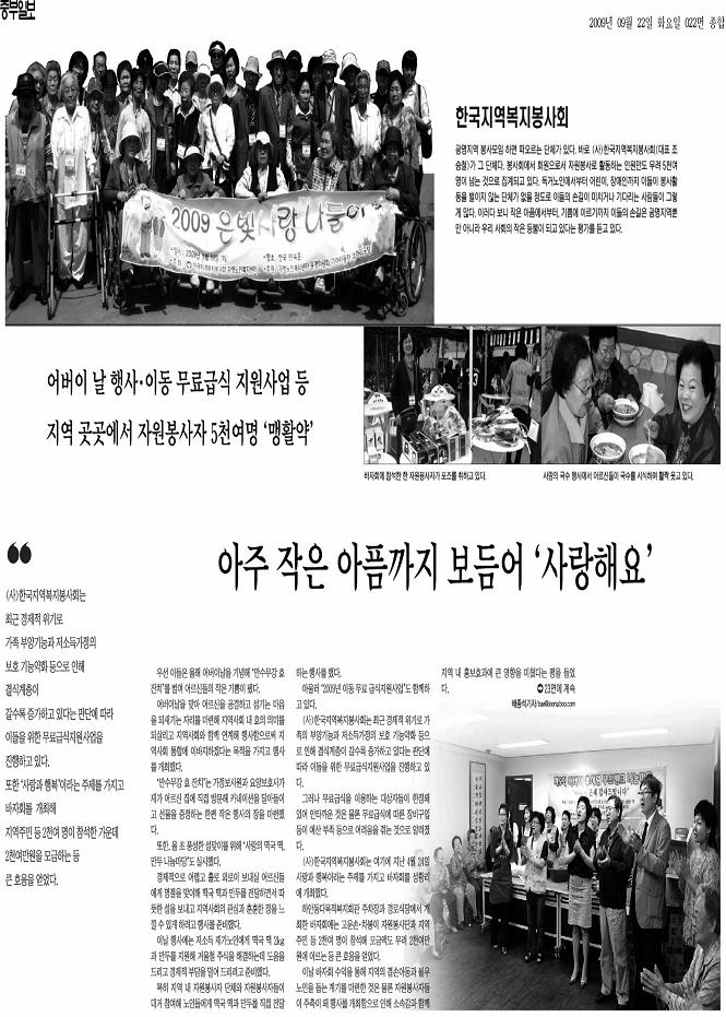 사랑나눔을 실천하는 한국지역복지봉사회 페이지 정보 작성자 최고관리자 댓글 0건 조회 6,520회 작성일 09-09-23 00:00 본문 사랑나눔을 실천하는 한국지역복지봉사회 목록 이전글봉사는 동정아닌 아픔고통을 함께 나누는 것 09.09.23 다음글사랑나눔을 실천하는 한국지역복지봉사회 09.09.23