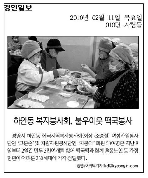 2010년 떡국떡 만두나눔마당 보도자료 페이지 정보 작성자 최고관리자 댓글 0건 조회 6,952회 작성일 10-02-16 00:00 본문 2010년 떡국떡 만두나눔마당 보도자료 목록 이전글2010년 떡국떡 만두나눔마당 보도자료 10.02.16 다음글2009 사랑의 김장김치 나눔마당 09.11.26