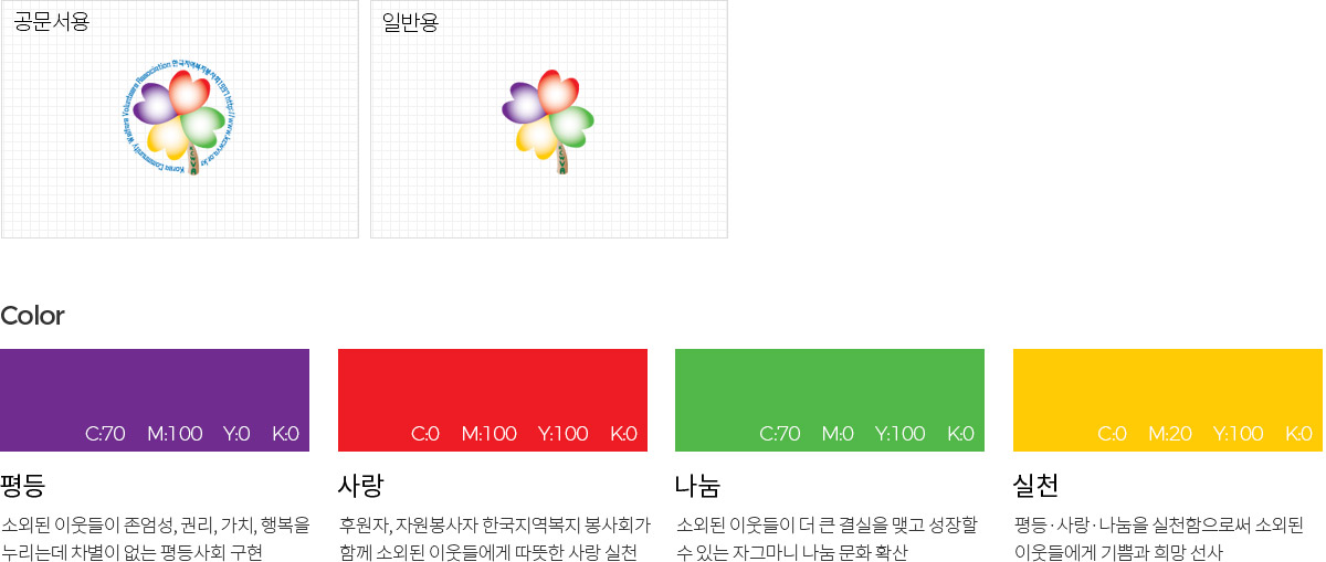 평등·사랑·나눔 실천이라는 아름다운 복지유산을 계승하여 모두가 행복할 수 있는 복지사회를 건설한다는 의미